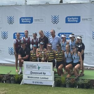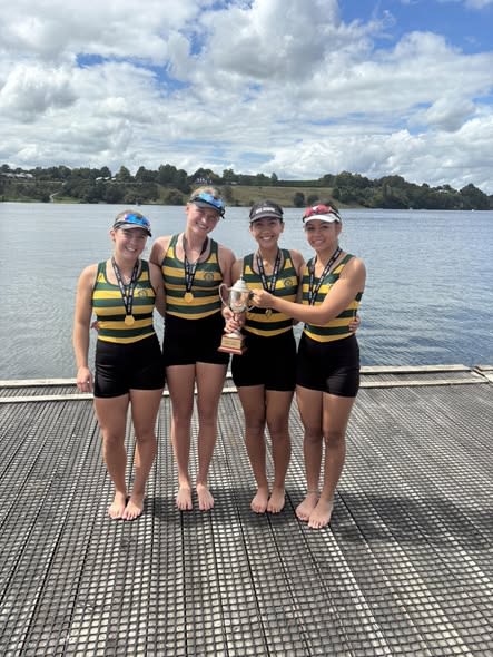 Congrats to Millie Richardson, Bailey Barnett, Sophia Sua’, DJ Paikea and coxswain Morgan Wood winning Gold in the U16 coxed quad.